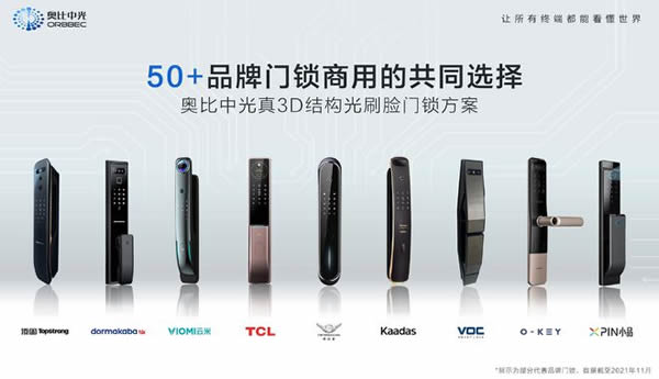 據悉,奧比中光在智能門鎖領域的合作伙伴,已經涵蓋了德施曼、云米、凱迪仕、小品、TCL、O-KEY、頂固、多瑪凱拔、VOC等眾多知名品牌。